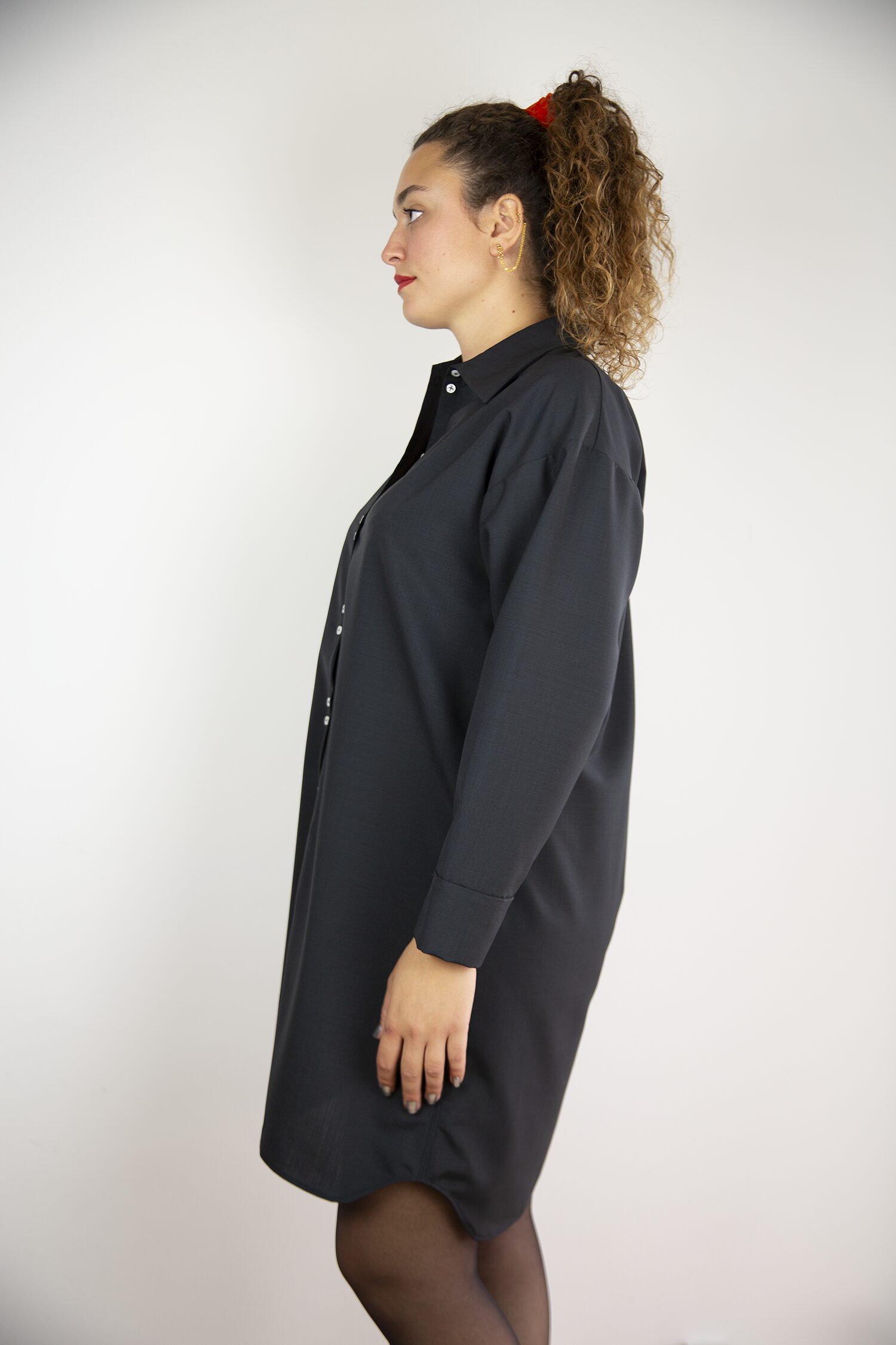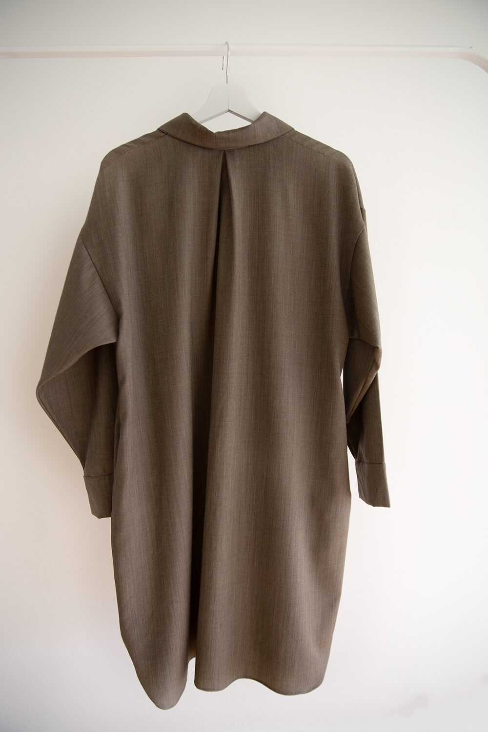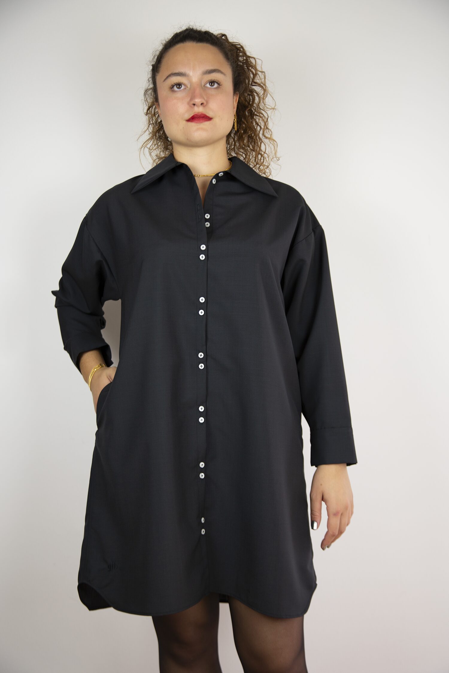 Déclinaison de la chemise Mies en version robe avec les détails iconiques GB, doubles boutons et poignets fendus. Elle conjugue volume large et non ajusté avec une allure quotidienne et élégante. Ses poches latérales pratiques se fondent dans la ligne. Une robe structurée, minimaliste et contemporaine. À porter fermée, ceinturée ou ouverte.